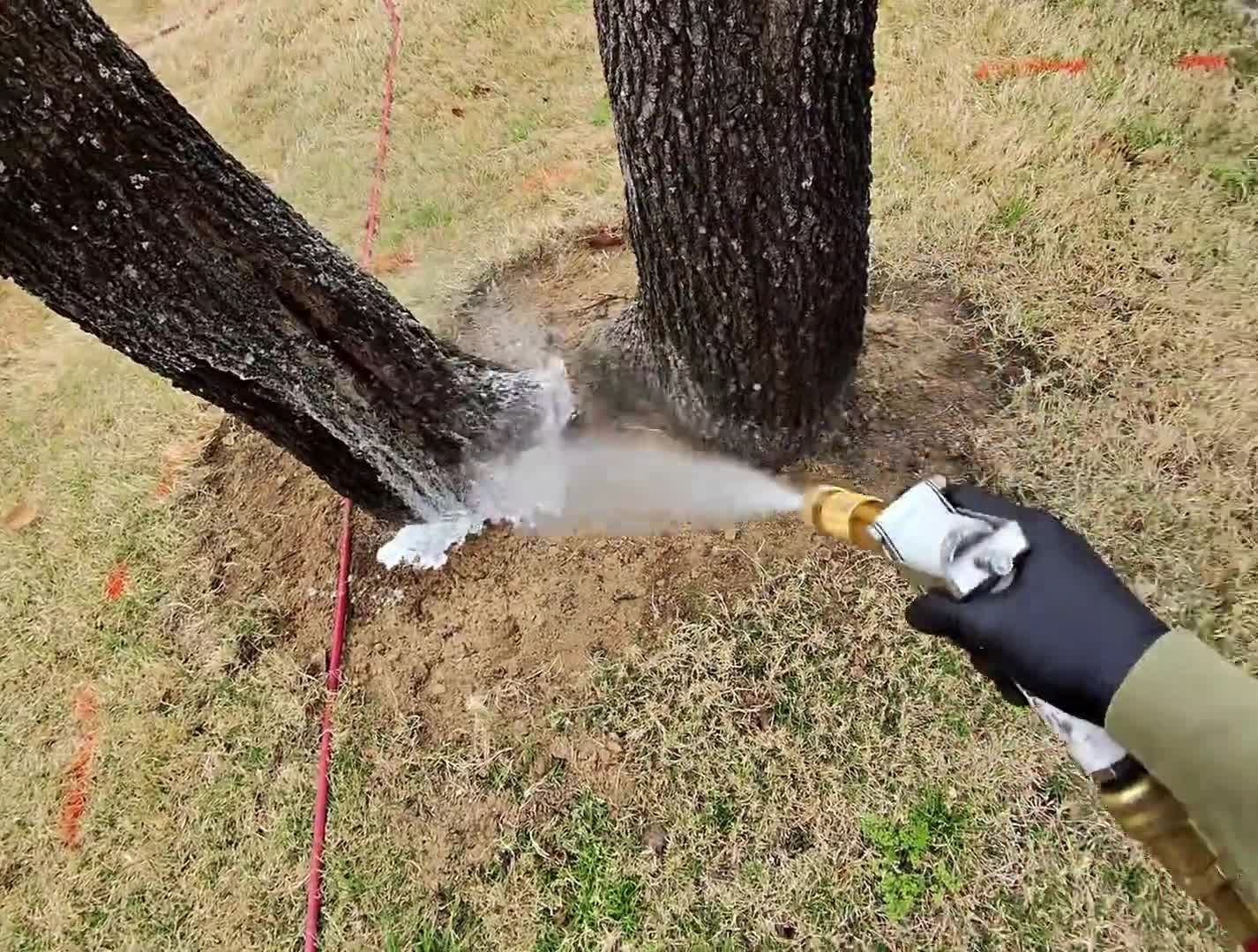 Basal Drench Application is a targeted Plant Health Care treatment applied to the root flare and lower trunk of the tree, allowing systemic materials to be absorbed directly through the bark and into the vascular system. This method is effective for delivering treatments that support protection against certain fungal pathogens, insect pests, and environmental stress factors.